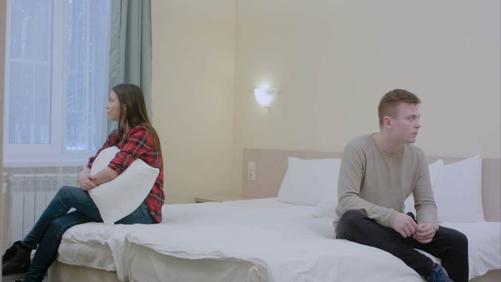 Scene: Late at night. The room is dim, a single lamp on. Mark and Sarah sit in bed, quiet.